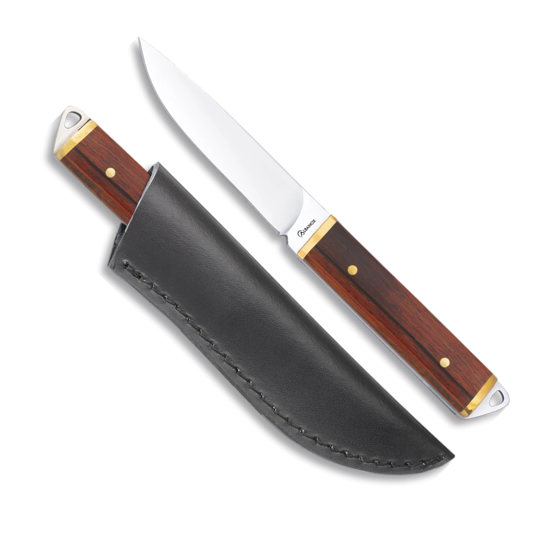 Couteau de chasse mini Albainox 32532, lame pleine soie en acier inox longueur 9 cm, manche en bois stamina et virole en laiton.