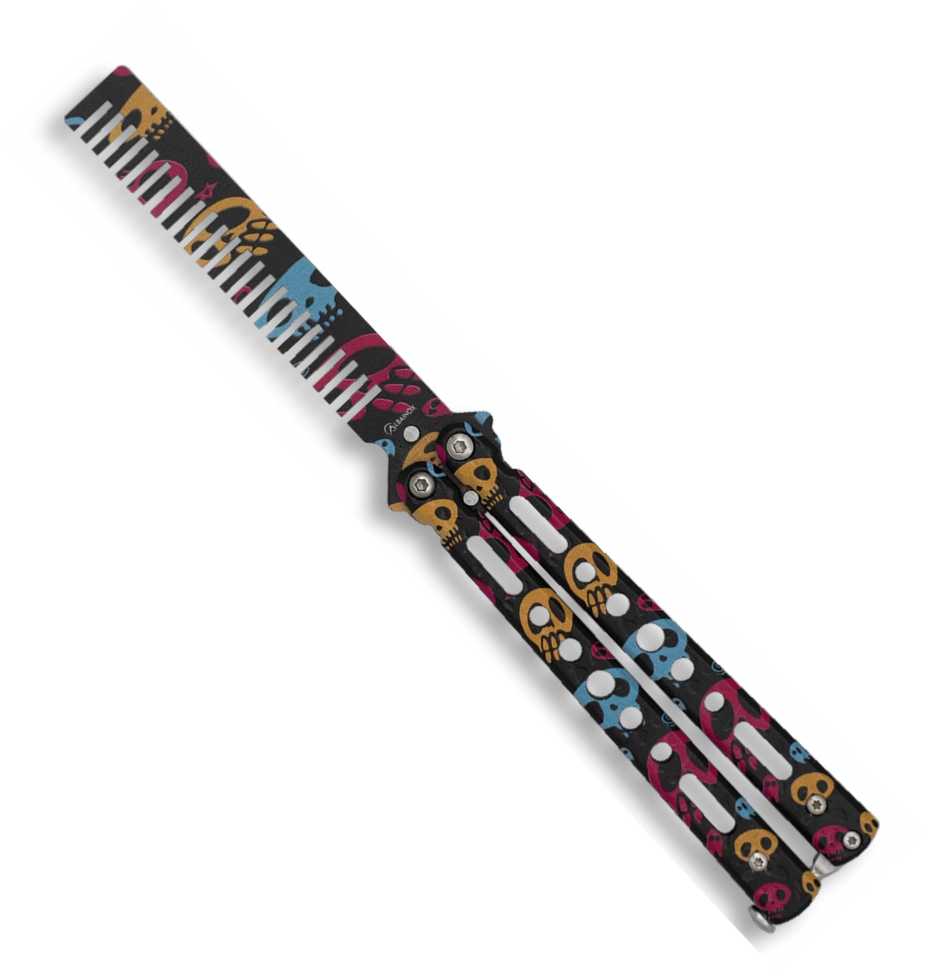 Couteau Papillon Peigne Dentrainement Albainox 02209 Tête De Mort 3D
