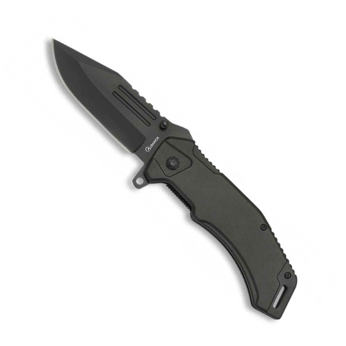Couteau pliant ALBAINOX 19909, lame inox longueur 9 cm, manche en aluminium noir.