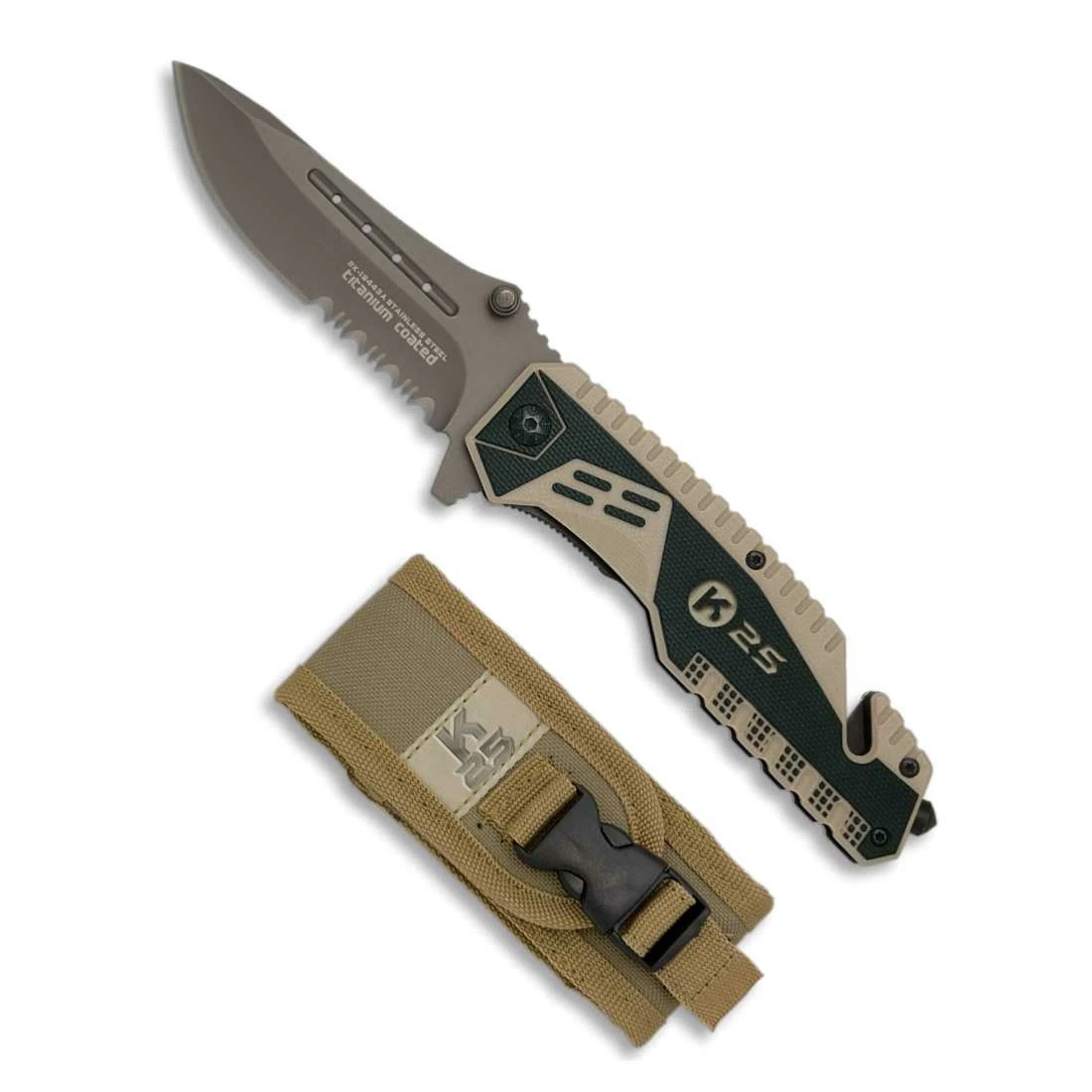 Couteau Pliant K25 ATTRACTION-2 Coyote Lame 8.9 Cm Revêtue Titane