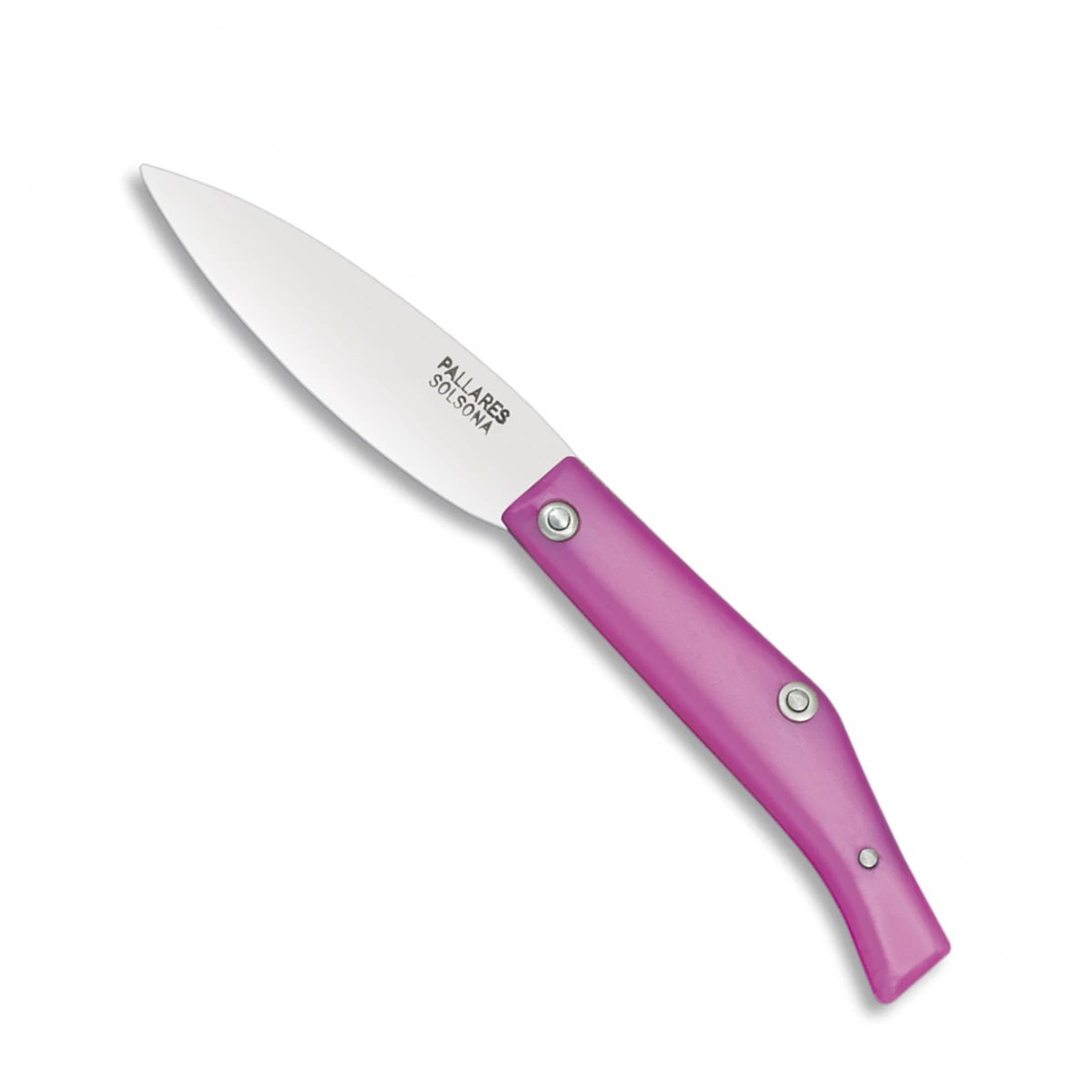 Couteau pliant PALLARES 06098-FU : lame en carbone longueur 7 cm, manche fuchsia en ABS. Système de verrouillage de la lame à piston.
