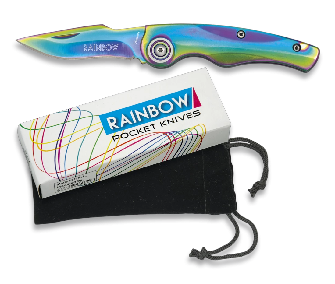 Couteau pliant Rainbow 18369, lame inox longueur 6.4 cm, manche acier.