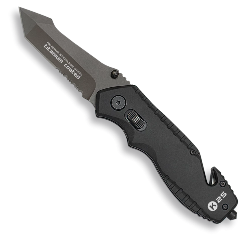 Couteau Pliant Tactique K25 Noir 18749 Lame 7.5 Cm