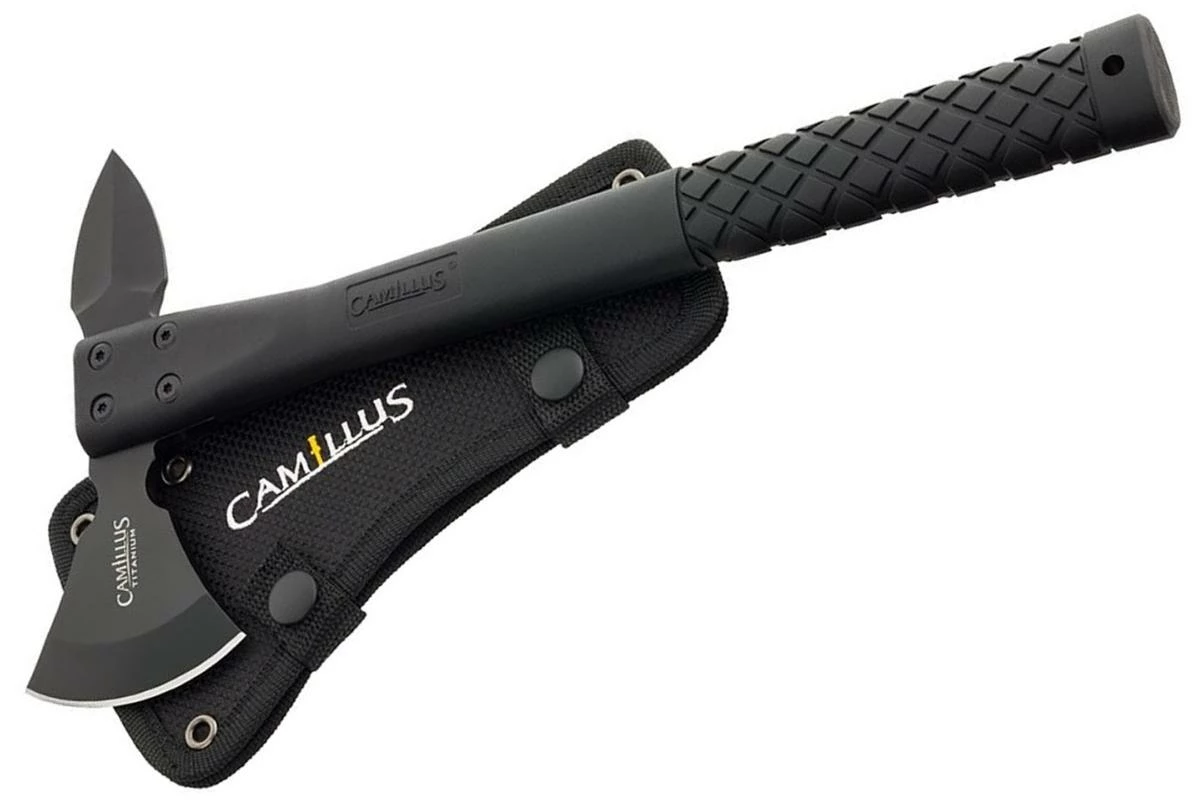 Hache Camillus 19173 Ravenous, lame en acier 420 traité titane, manche en nylon.