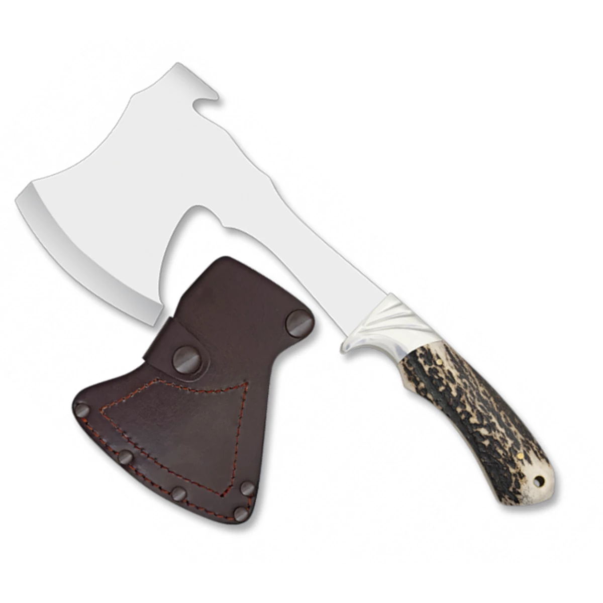 Hache de chasse en acier inox et manche en corne de cerf.