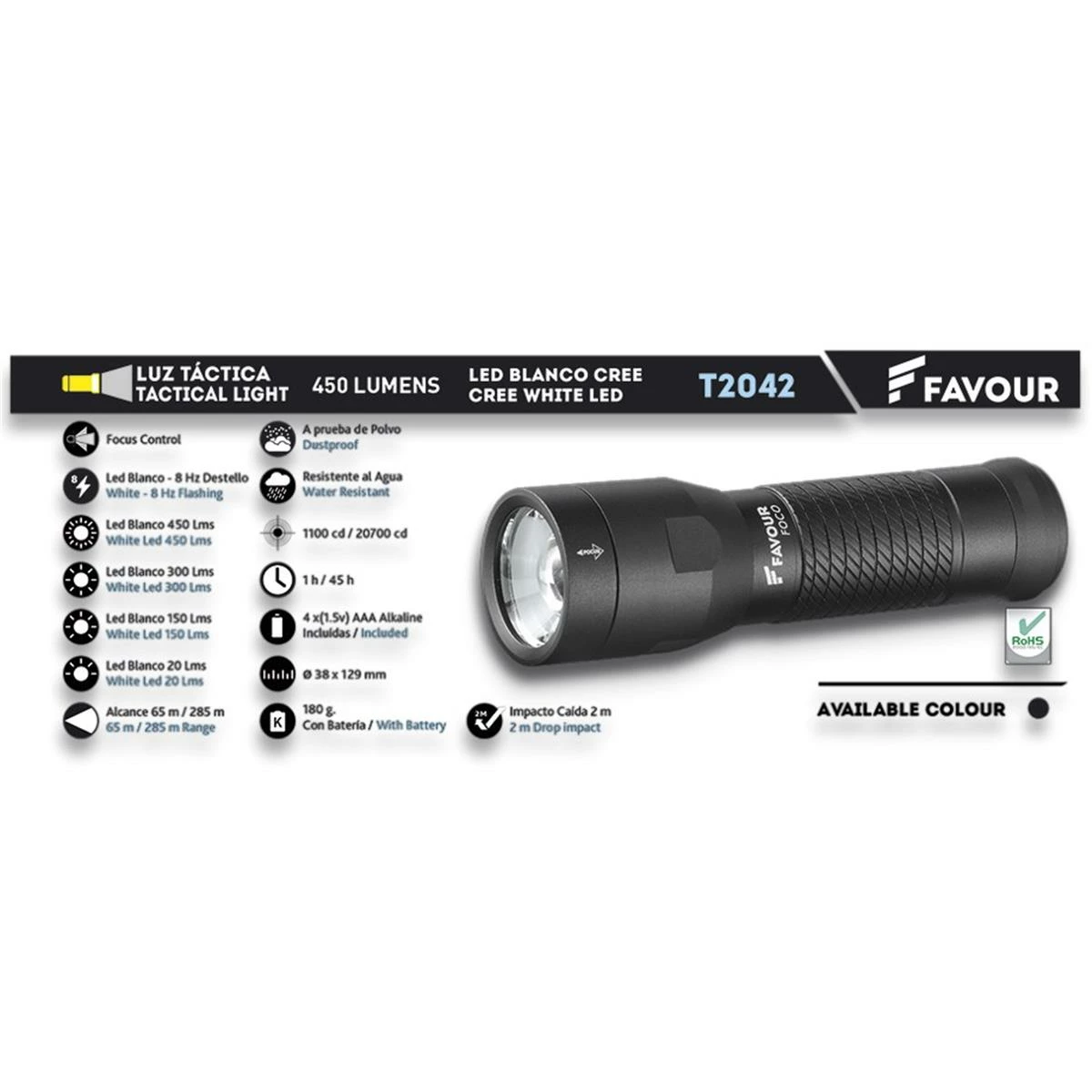 Lampe torche tactique FAVOUR T2042 450 lumens 285 m