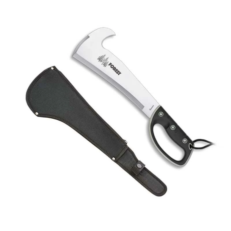 Machette Tapanga Albainox 32459, lame acier inox longueur 27 cm avec skinner et manche en caoutchouc et ABS noir et gris.