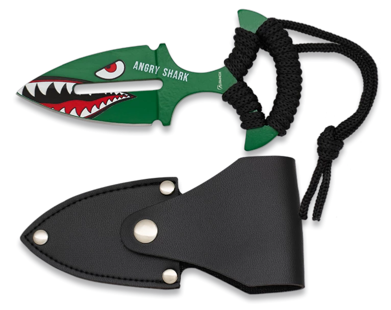 Push dagger Albainox ligne Angry Shark 32524, lame inox longueur 6.5 cm avec décor 3D ligne Angry Shark, manche acier encordé noir.