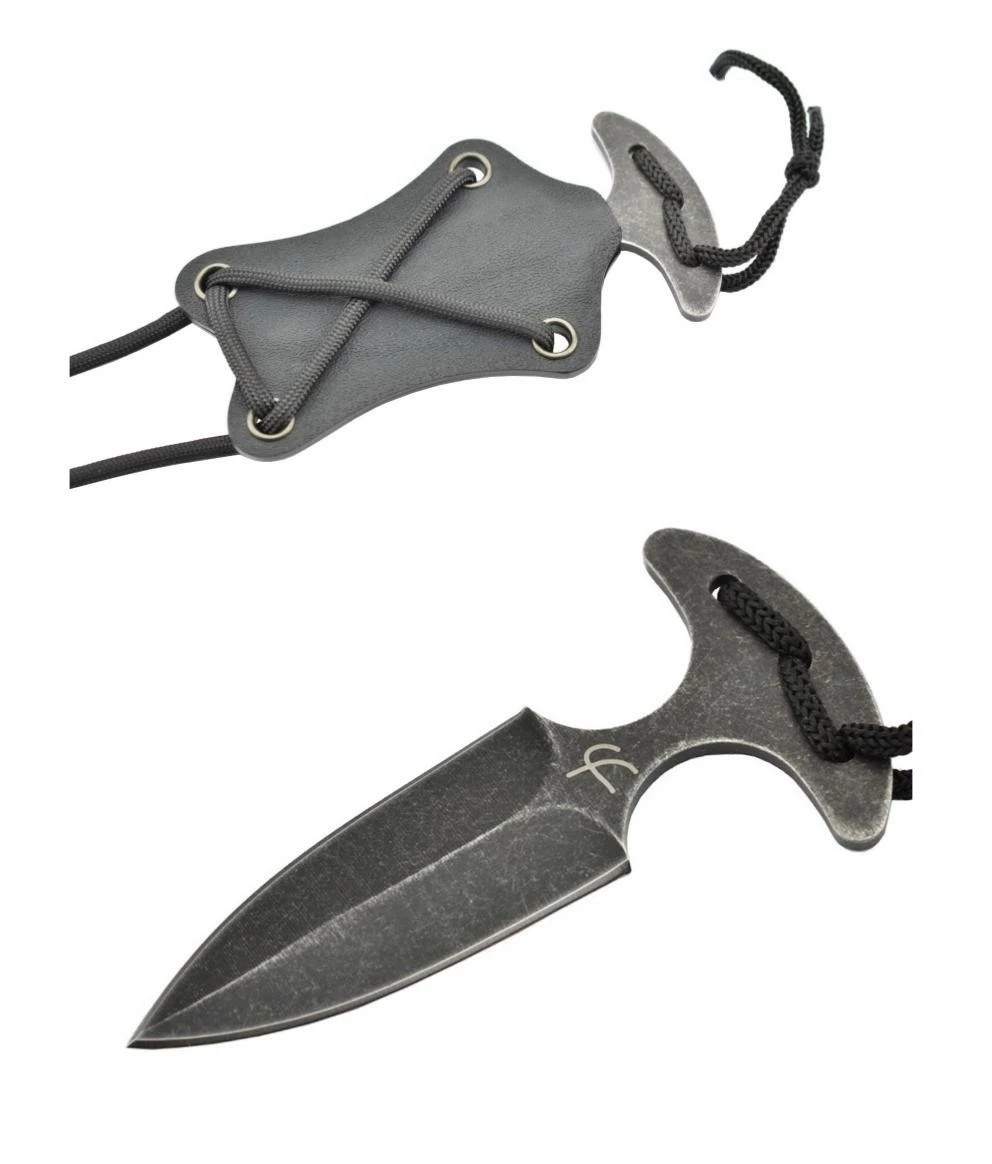 Push-Dagger FP1802, lame acier 440C double tranchant longueur 6.3 cm finition stone washed. Etui kydex avec cordon en nylon.